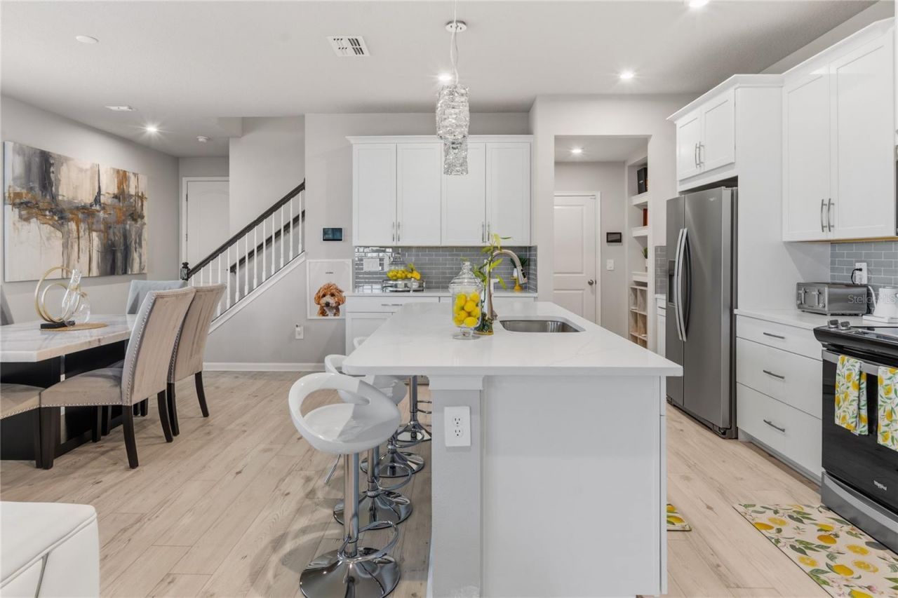 Welcome to this stunning end-unit townhome in the gated community of Volanti built by Mattamy Homes, ideally located in the highly sought-after Lutz/Wesley Chapel area. Offering 2,574 square feet, 4 bedrooms, 3 full bathrooms, a spacious loft, and a 2-car garage, this **nearly new, two-year-old** Venice floor plan perfectly blends style, comfort, and functionality.Situated on a premium corner lot, this home is filled with natural light and features an open-concept layout with soaring ceilings and luxury vinyl plank flooring throughout the main living areas. The kitchen is designed to impress with 42 linen cabinetry, quartz countertops, a classic subway tile backsplash, stainless steel appliances, and a large center island with breakfast bar-ideal for entertaining or everyday living. The expansive living area flows seamlessly to a screened-in, pavered lanai through oversized sliding glass doors, creating the perfect indoor-outdoor space to relax and unwind.The first floor also includes a full bedroom and bathroom, offering flexibility for guests, a home office, or multigenerational living.Upstairs, the private owner's suite is thoughtfully positioned for privacy and features a spacious walk-in closet, dual vanities, and a large walk-in shower. Two additional bedrooms-each with walk-in closets-are complemented by a generous loft, perfect for a media room, home office, or playroom.Additional highlights include an oversized upstairs laundry room, a built-in drop zone near the garage for everyday organization, Smart Home Technology, double-pane Low-E windows, and energy-efficient construction. The HOA provides low-maintenance living with exterior maintenance, including roof, painting, landscaping, lawn care, and pressure washing.Residents of Volanti enjoy gated access with resort-style amenities, including a heated pool, BBQ area, and outdoor fire pit-all with **no CDD fees**. This prime location places you just minutes from Tampa Premium Outlets, The Shops at Wiregrass, and The Grove at Wesley Chapel, along with top-rated schools, dining, hospitals, and convenient access to I-75, I-275, SR-56, and SR-54.If you've been searching for a spacious, low-maintenance home in a prime Wesley Chapel location- This home is the perfect match! Schedule your private showing today!